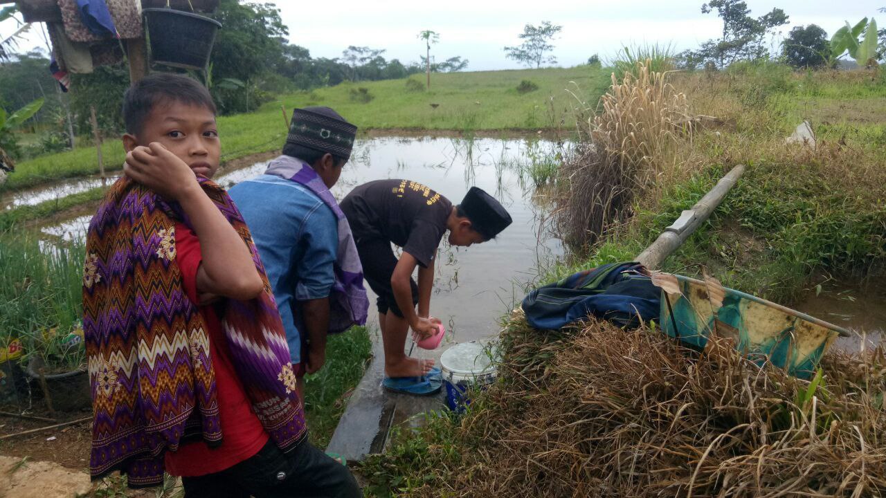 Tak hanya sebatas itu, Mushola Al hikmah pun tak memiliki toilet yang memadai. Sehingga para santri hanya bisa memanfaatkan kubangan air kolam untuk berwudhu.